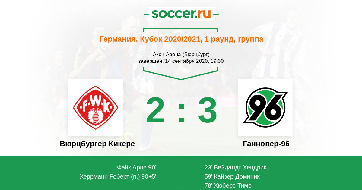 Протокол матча Вюрцбургер Кикерс против Ганновер-96