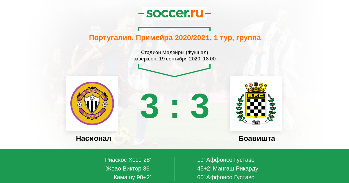 Гол90+2' (3:3) Камашу (7) (Рубен Фрейташ (27))