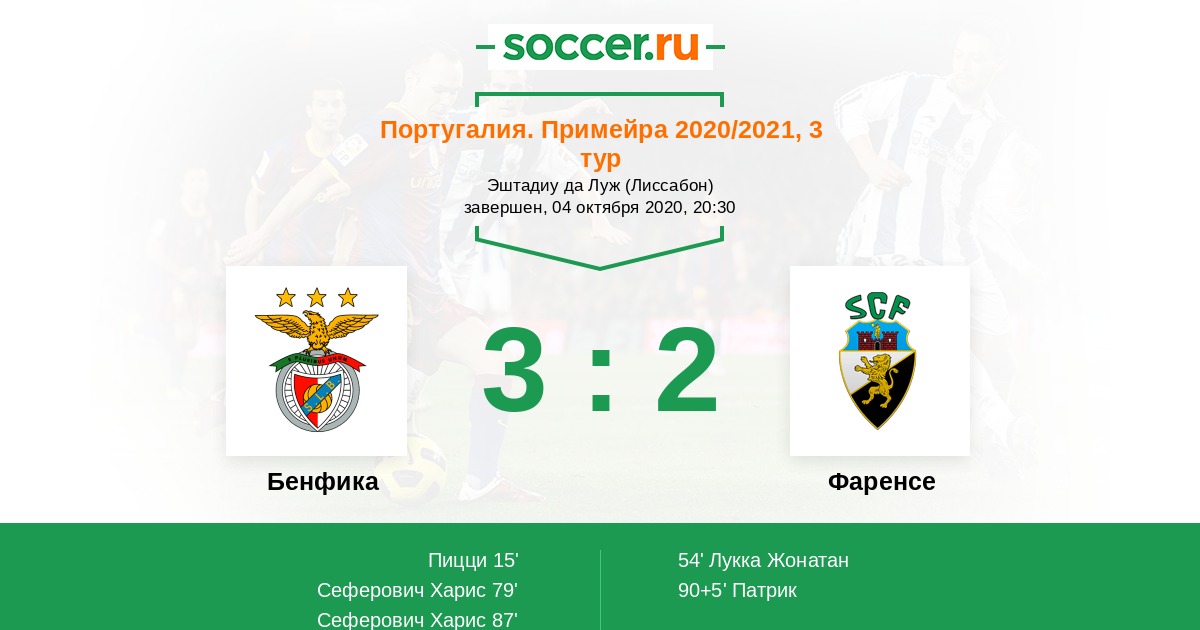 Протокол матча Бенфика против Фаренсе