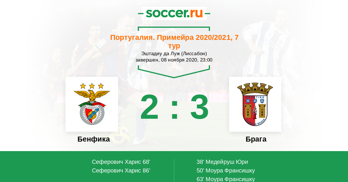 Протокол матча Бенфика против Брага
