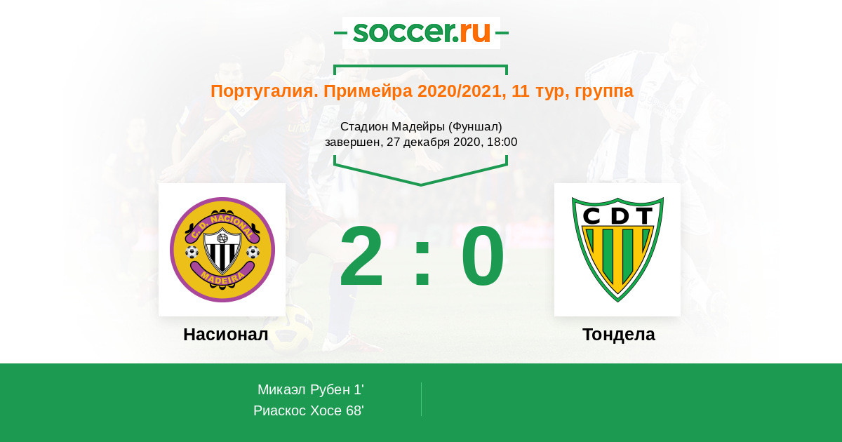 Протокол матча Насионал против Тондела
