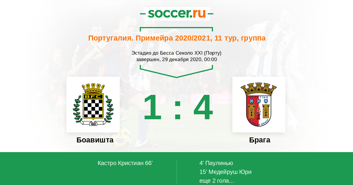 4' (0:1) Паулинью (20) (Барбоса Франсержио (27))