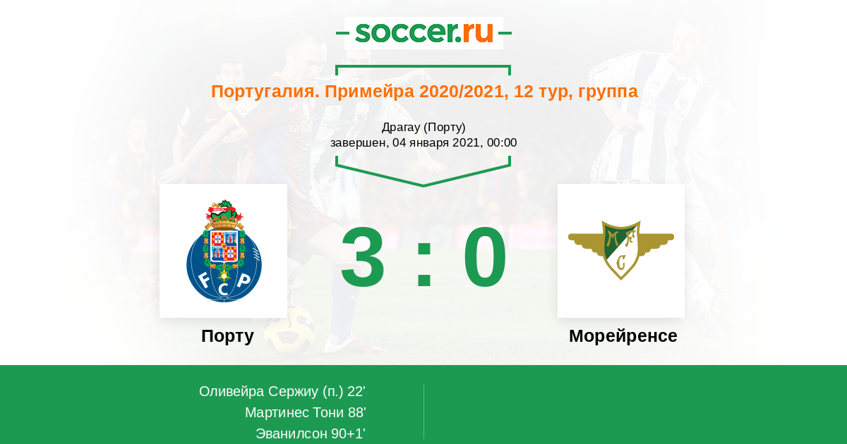 Протокол матча Порту против Морейренcе