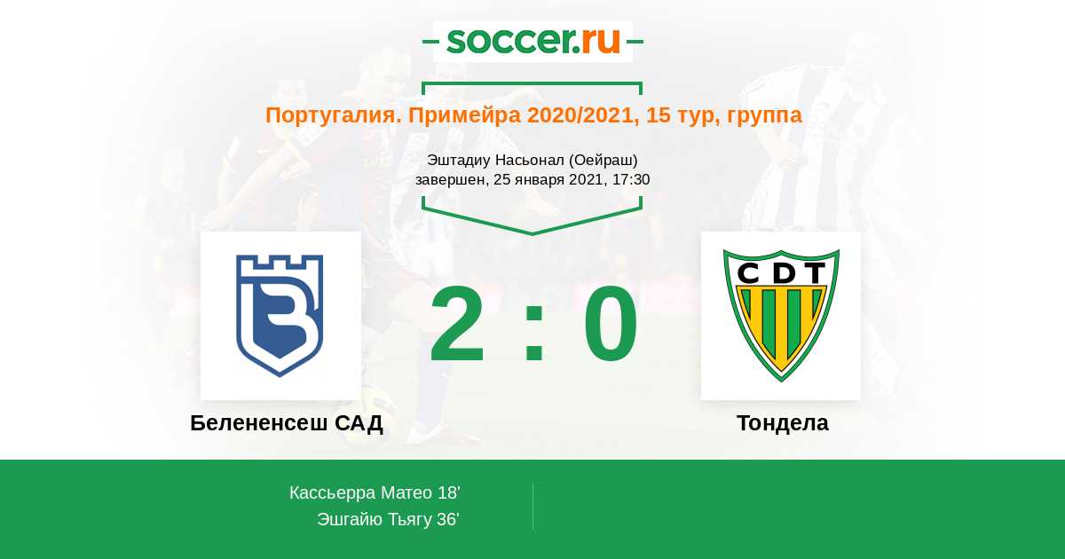 Протокол матча Белененсеш САД против Тондела