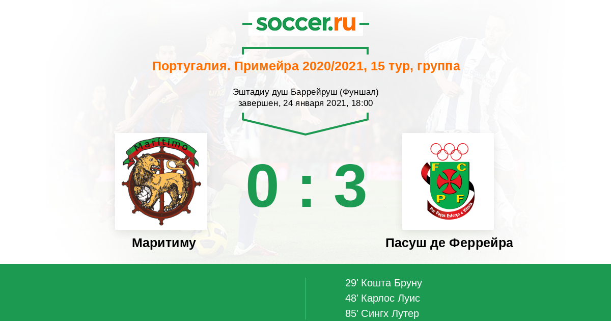 Протокол матча Маритиму против Пасуш де Феррейра