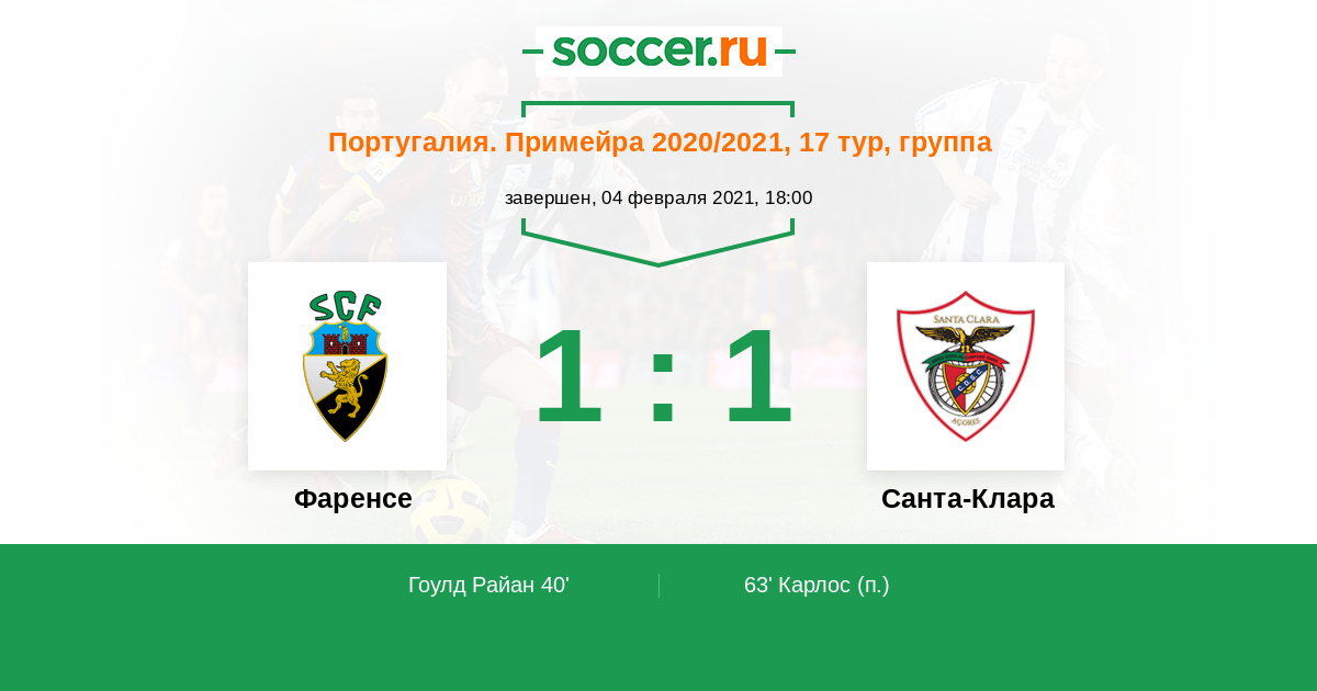 Протокол матча Фаренсе против Санта-Клара