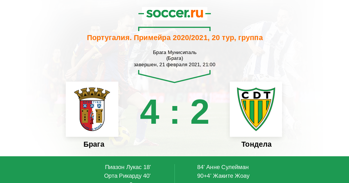 40' (2:0) Орта Рикарду (21) (Пиазон Лукас (11))