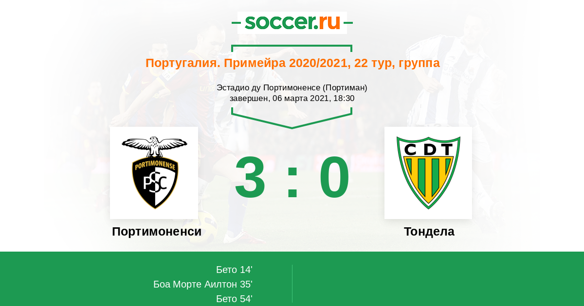Протокол матча Портимоненси против Тондела