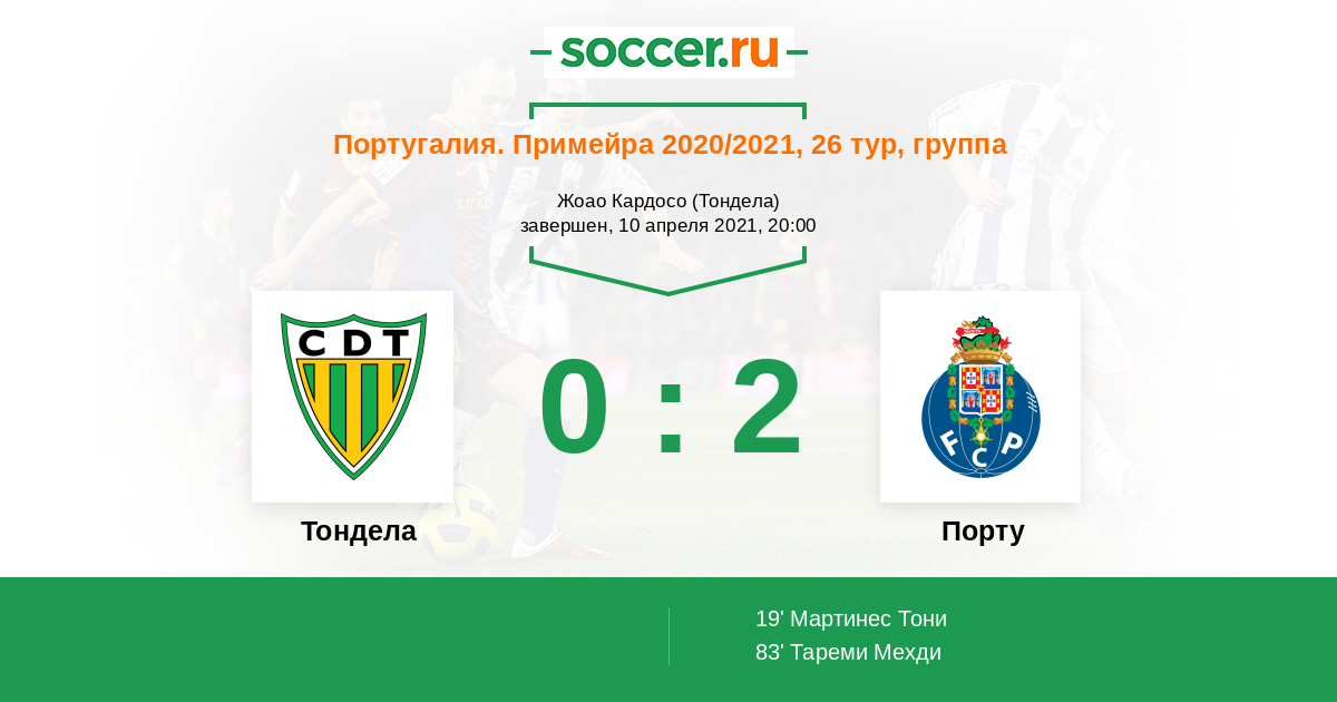 Протокол матча Тондела против Порту