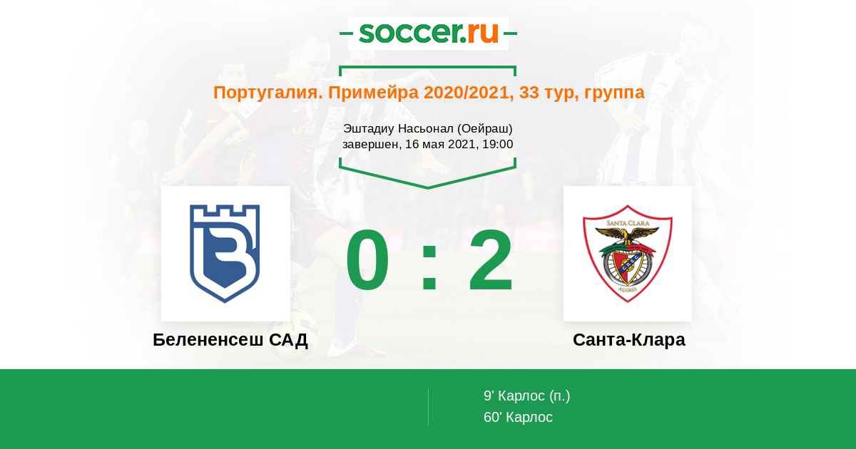 Протокол матча Белененсеш САД против Санта-Клара