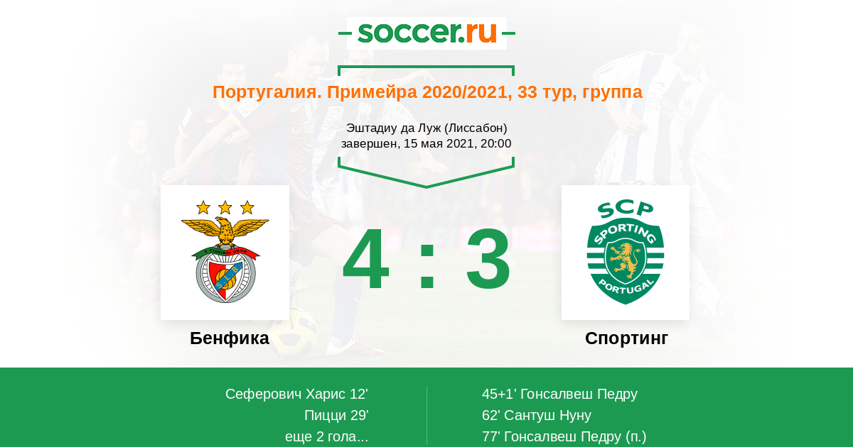 Протокол матча Бенфика против Спортинг