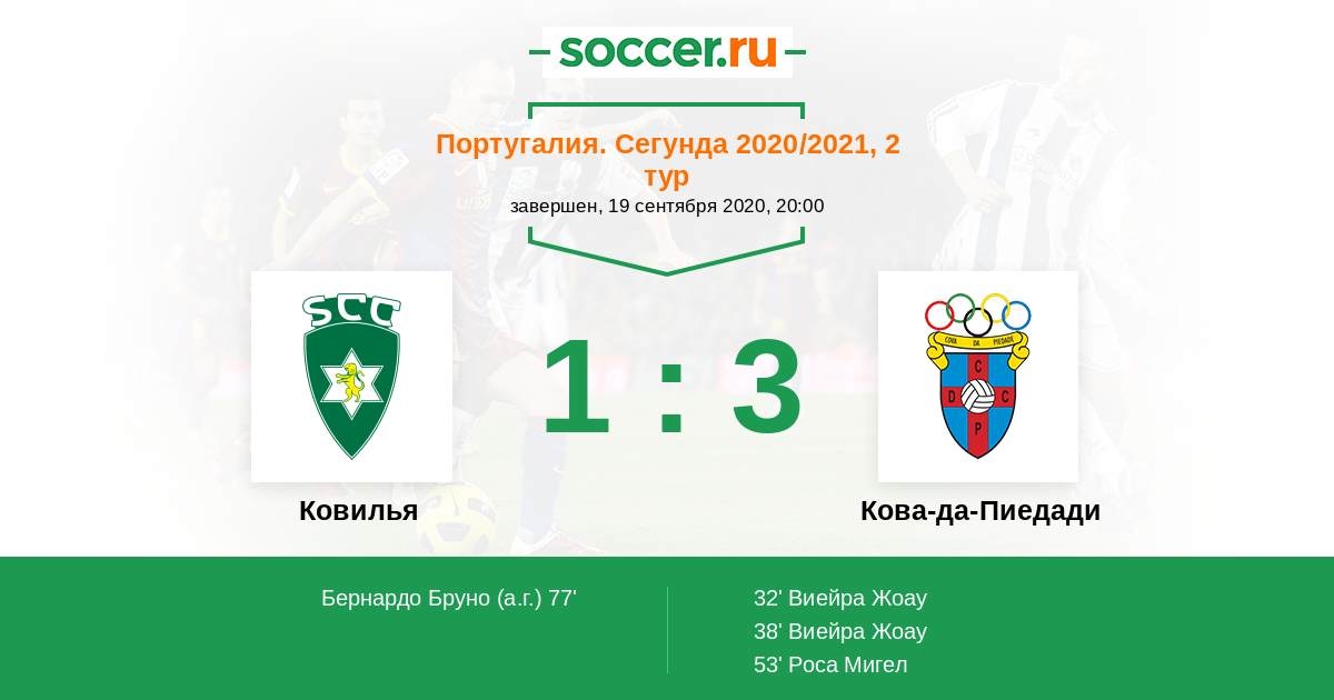 Протокол матча Ковилья против Кова-да-Пиедади
