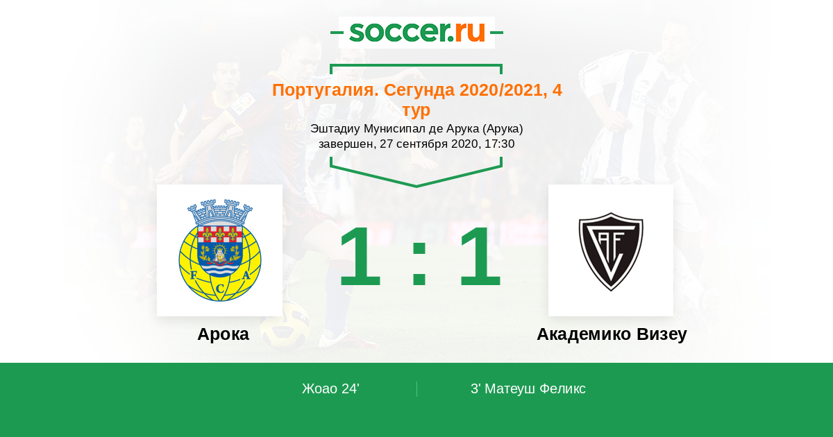 Протокол матча Арока против Академико Визеу