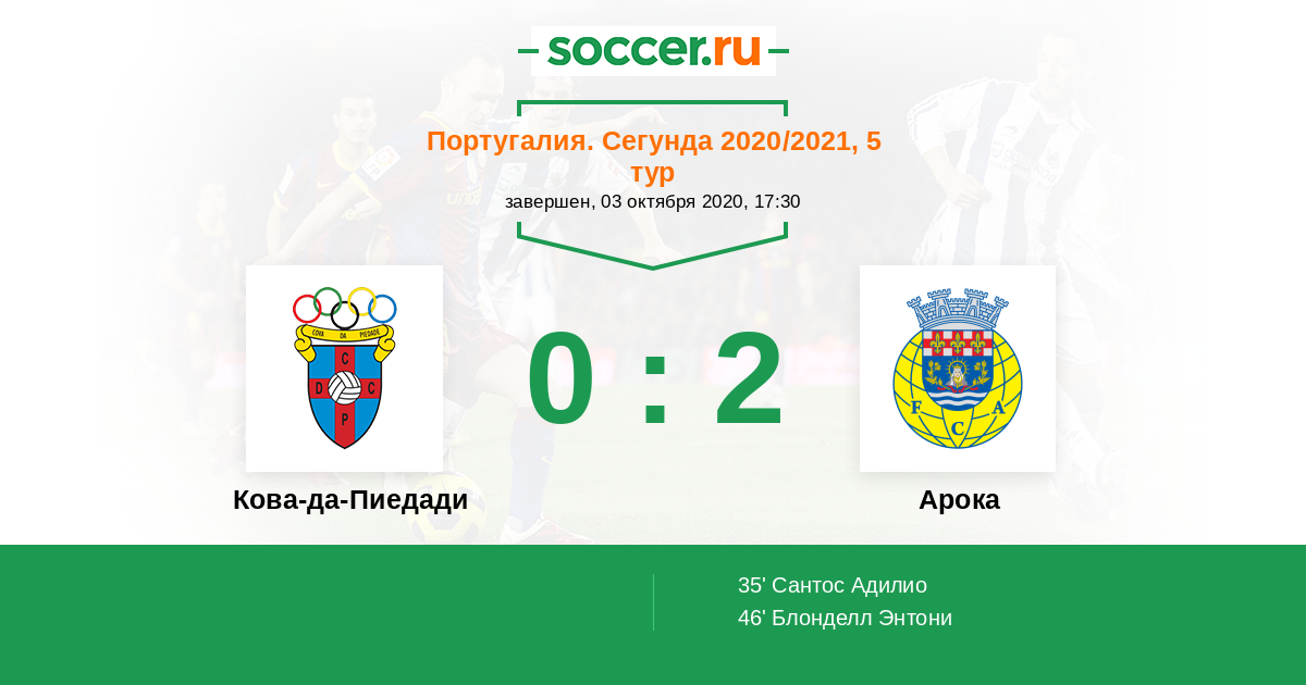 Протокол матча Кова-да-Пиедади против Арока