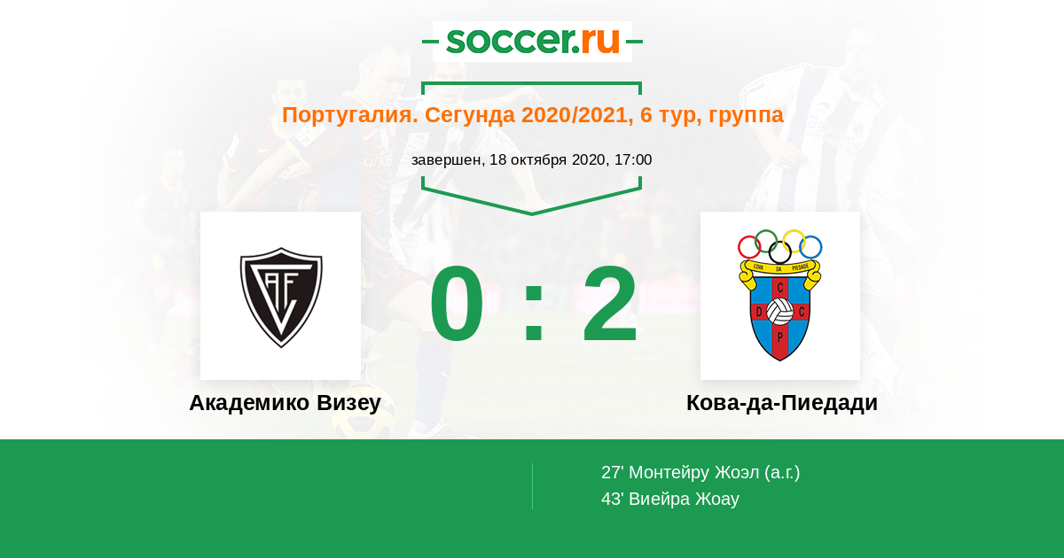 Протокол матча Академико Визеу против Кова-да-Пиедади