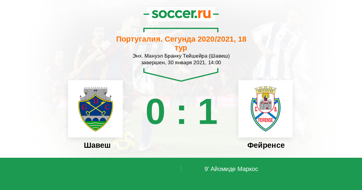 Протокол матча Шавеш против Фейренсе