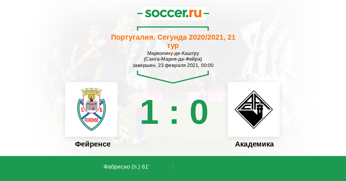 Протокол матча Фейренсе против Академика