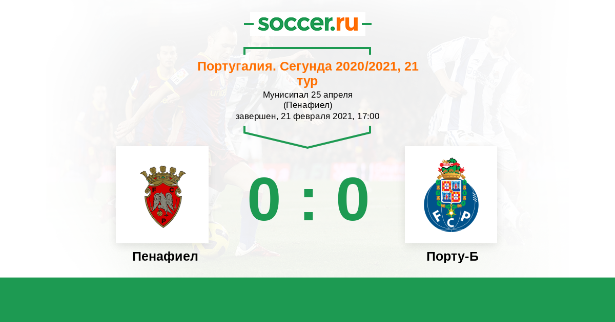 Протокол матча Пенафиел против Порту-Б