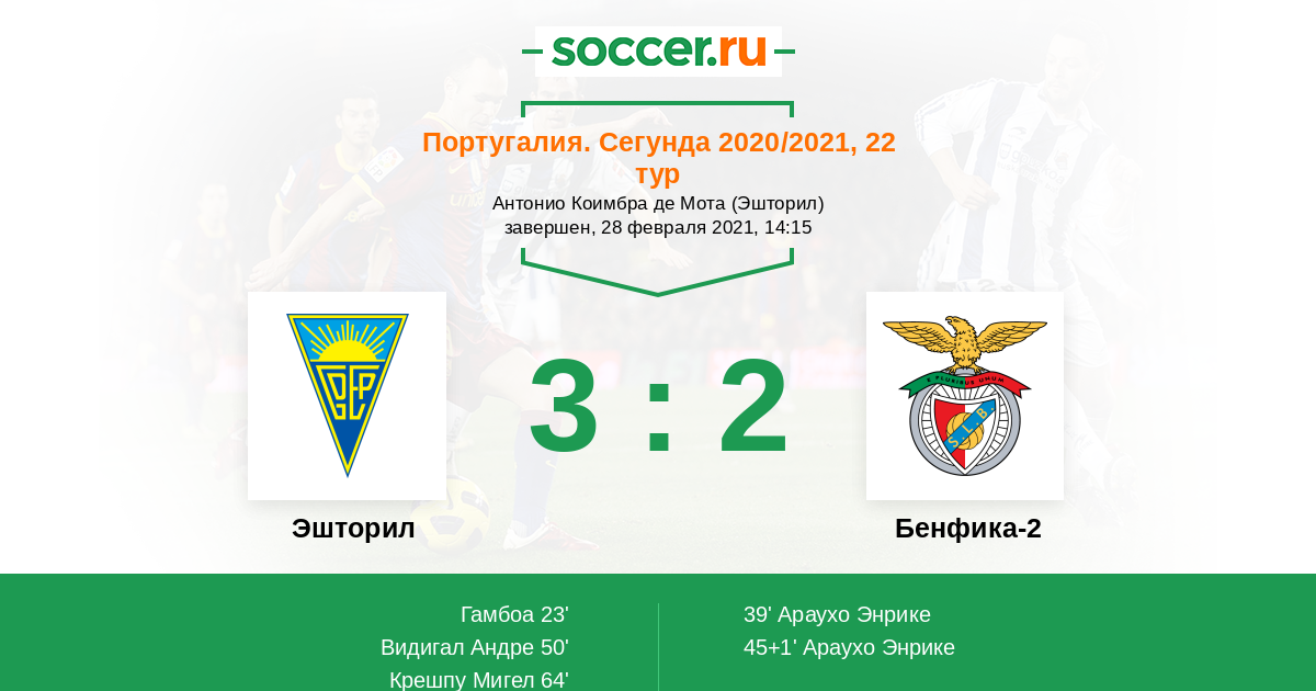Протокол матча Эшторил против Бенфика-2