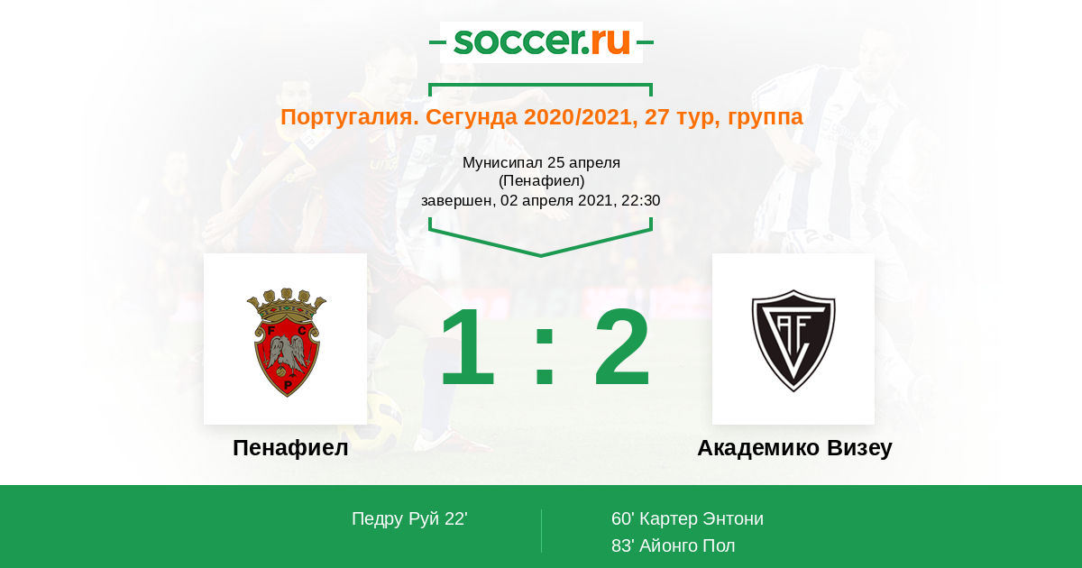 Протокол матча Пенафиел против Академико Визеу