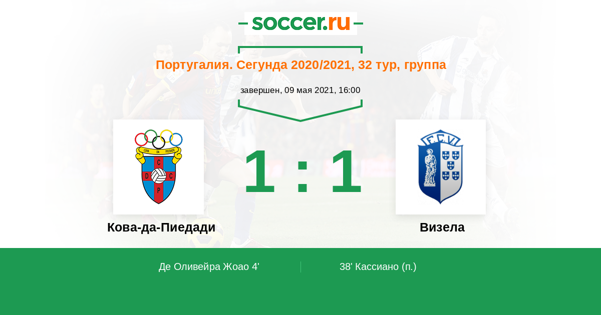 Протокол матча Кова-да-Пиедади против Визела