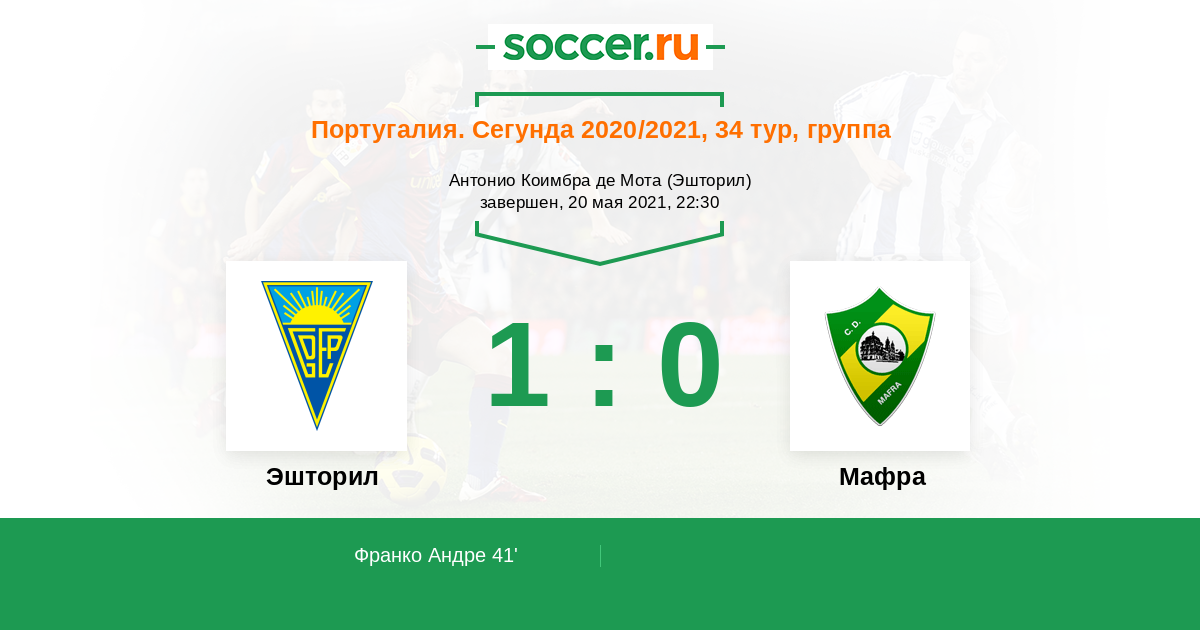 Протокол матча Эшторил против Мафра