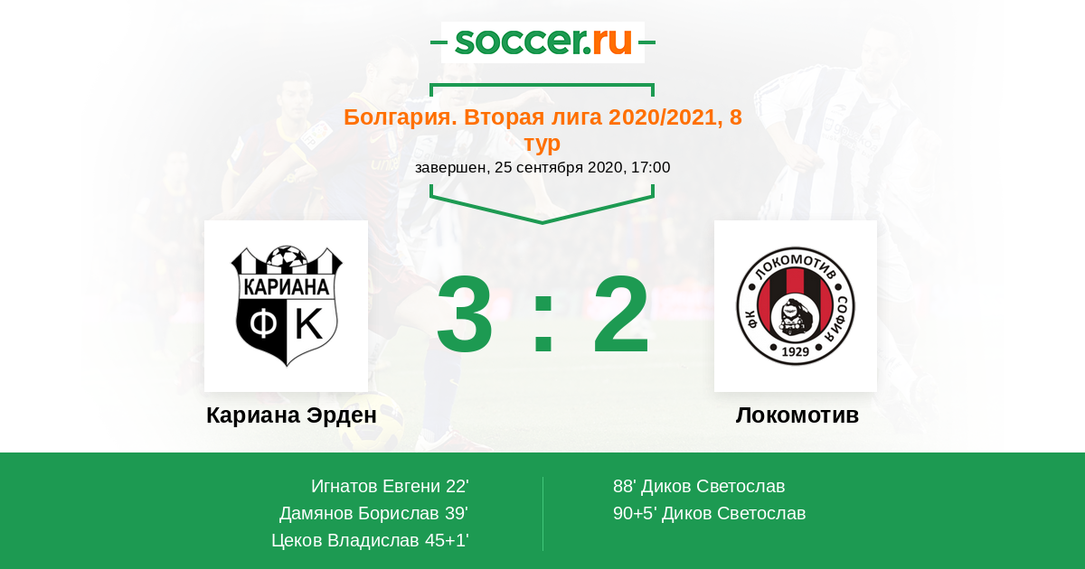 Протокол матча Кариана Эрден против Локомотив