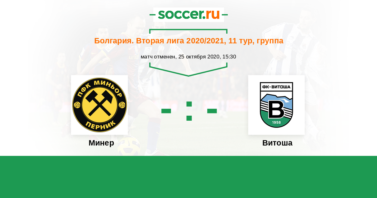 Болгария. Вторая лига 17.03.2023 Минер Логотип футбольный клуб Минер (Перник) 1:1 Логотип футбольный клуб Витоша (Бистрица) Витоша