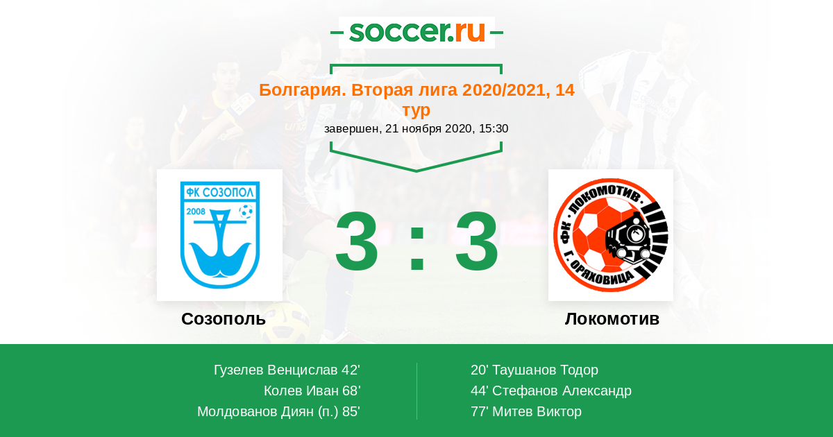 Протокол матча Созополь против Локомотив