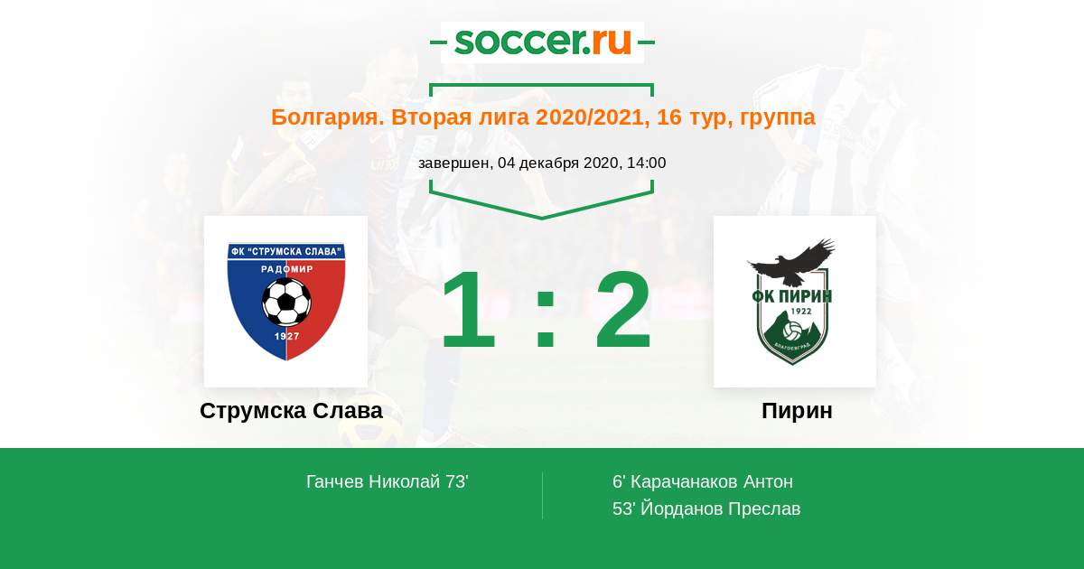 Протокол матча Струмска Слава против Пирин