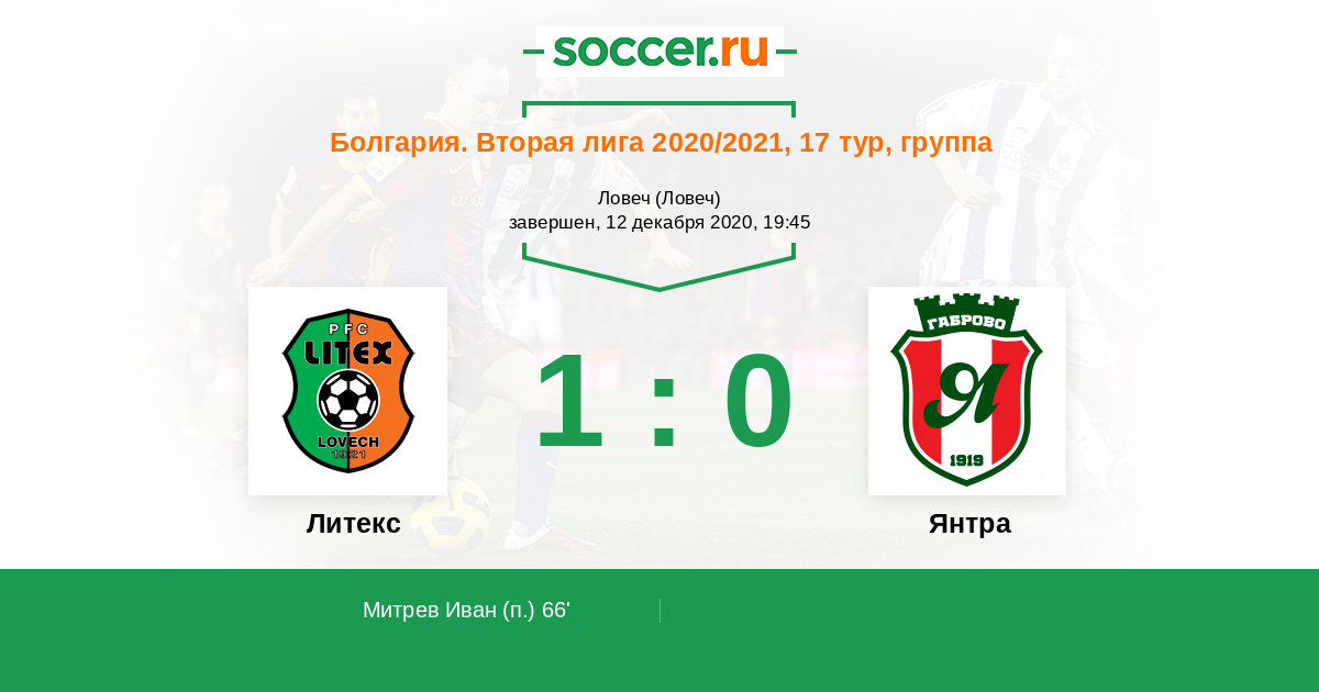 Протокол матча Литекс против Янтра