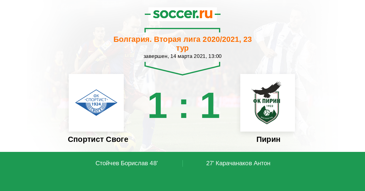 Протокол матча Спортист Своге против Пирин