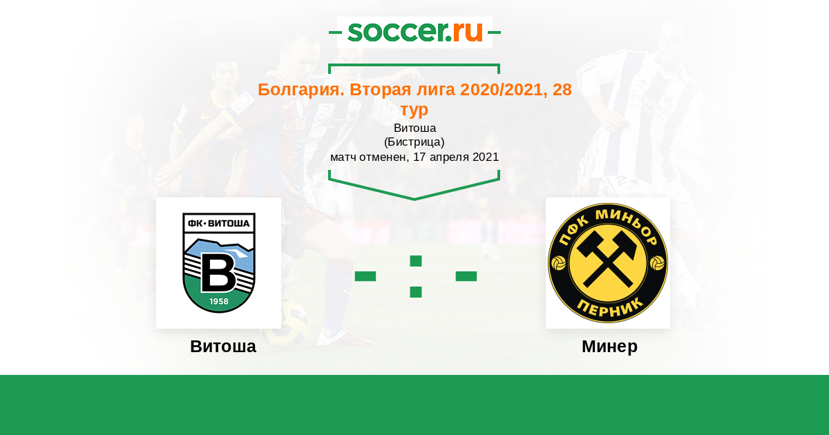 Болгария. Вторая лига 17.03.2023 Минер Логотип футбольный клуб Минер (Перник) 1:1 Логотип футбольный клуб Витоша (Бистрица) Витоша