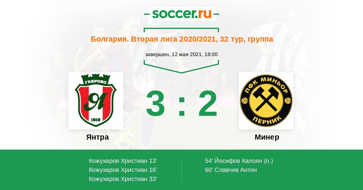 Протокол матча Янтра против Минер