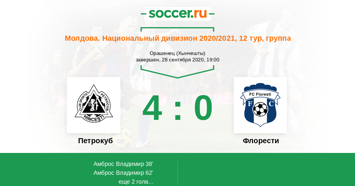 Протокол матча Петрокуб против Флорести