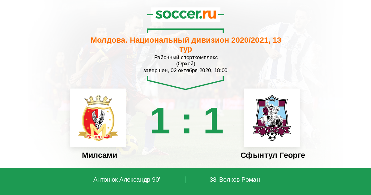 Протокол матча Милсами против Сфынтул Георге