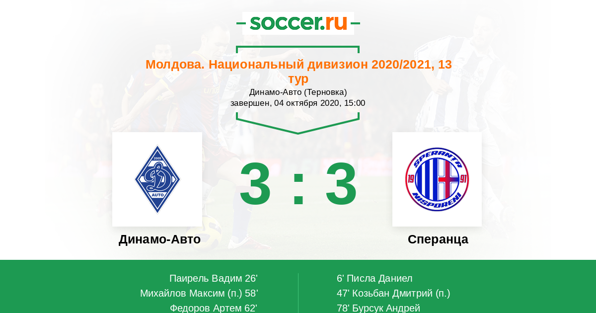 Протокол матча Динамо-Авто против Сперанца