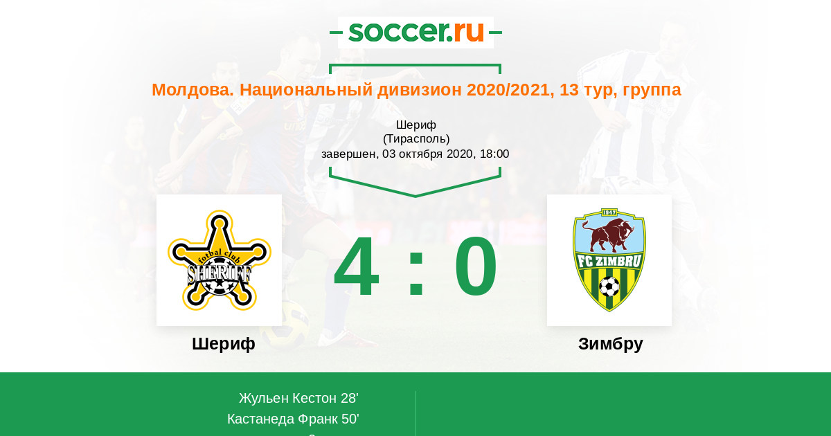 Протокол матча Шериф против Зимбру