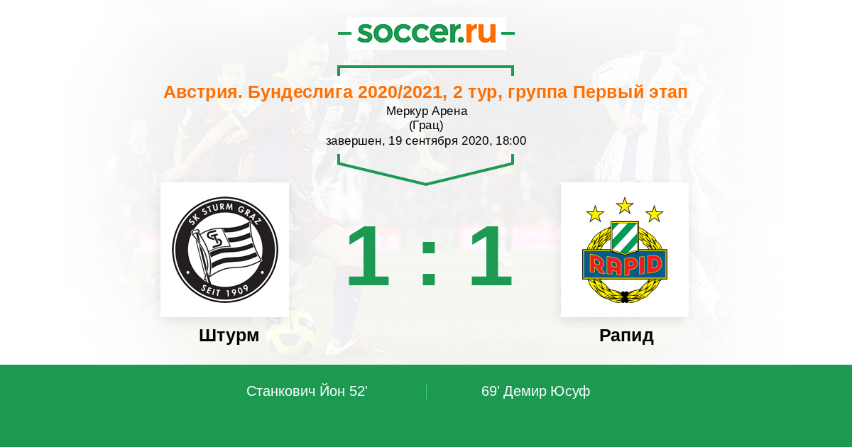 52' (1:0) Станкович Йон (4) (Янтшер Якоб (13))