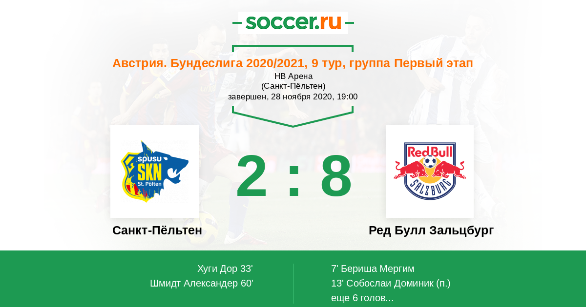 Протокол матча Санкт-Пёльтен против Ред Булл Зальцбург