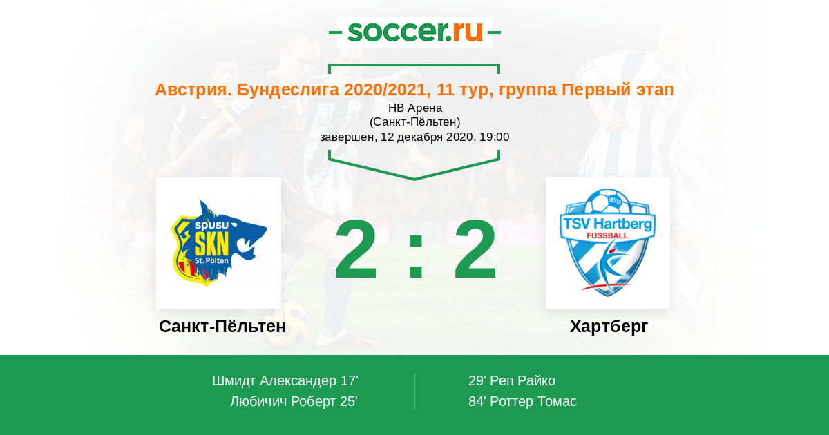Протокол матча Санкт-Пёльтен против Хартберг