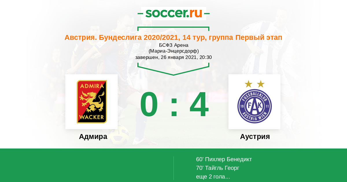 60' (0:1) Пихлер Бенедикт (11) (Зуттнер Маркус (29))