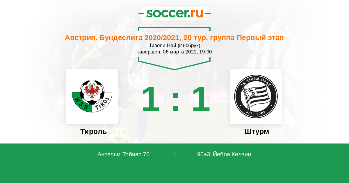Протокол матча Тироль против Штурм