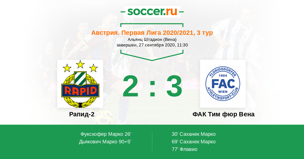 Протокол матча Рапид-2 против ФАК Тим фюр Вена