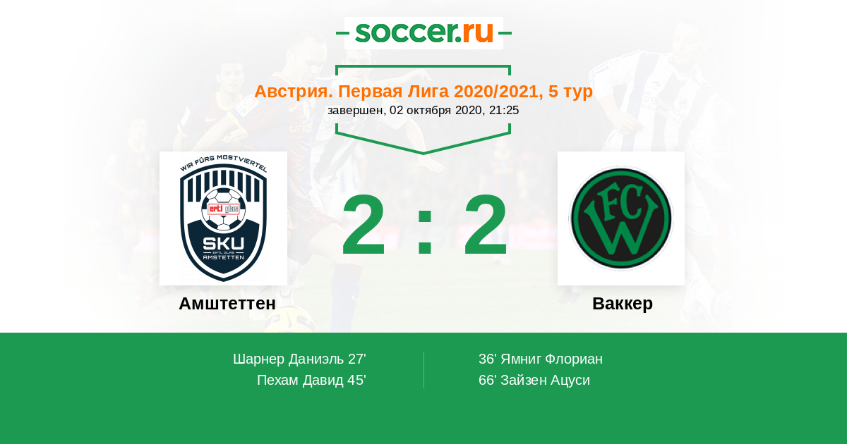 Протокол матча Амштеттен против Ваккер