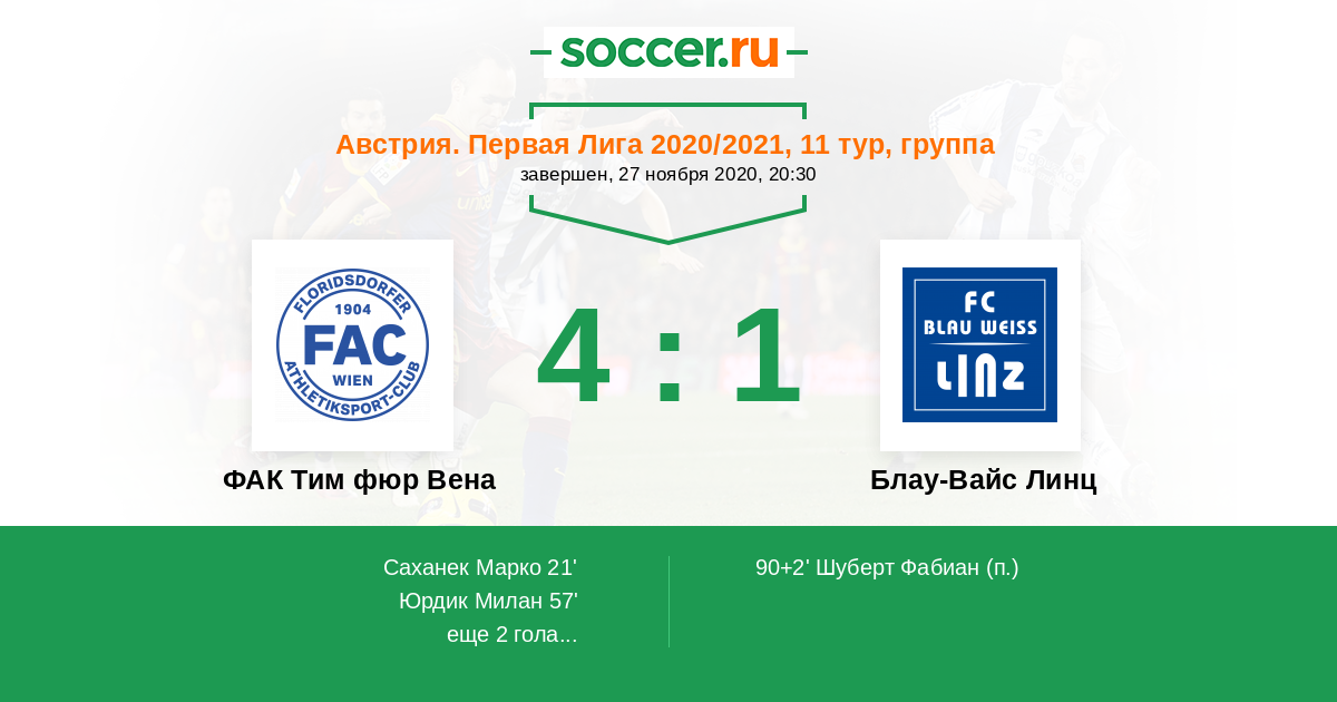 Протокол матча ФАК Тим фюр Вена против Блау-Вайс Линц