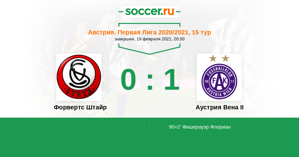 Протокол матча Форвертс Штайр против Аустрия Вена II
