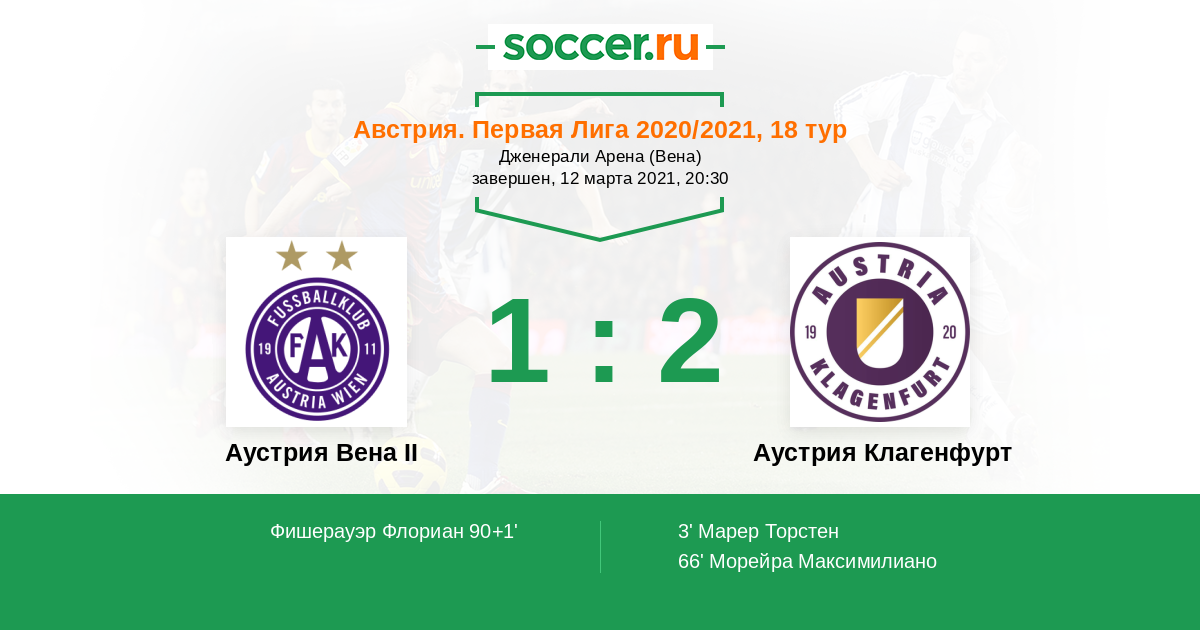 Протокол матча Аустрия Вена II против Аустрия Клагенфурт