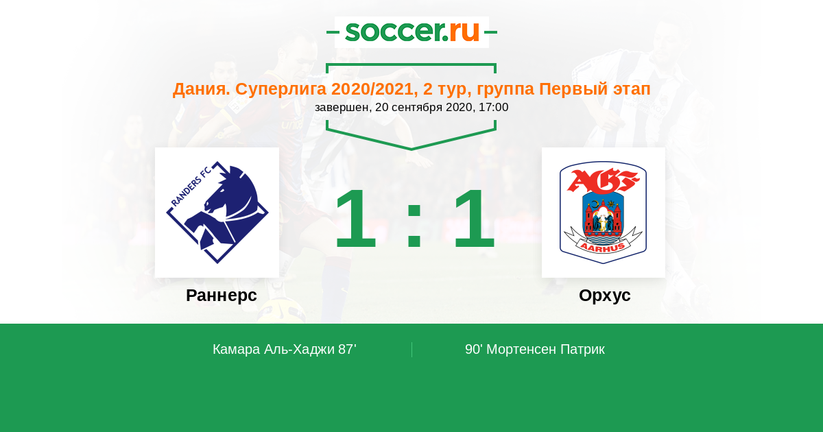 Протокол матча Раннерс против Орхус