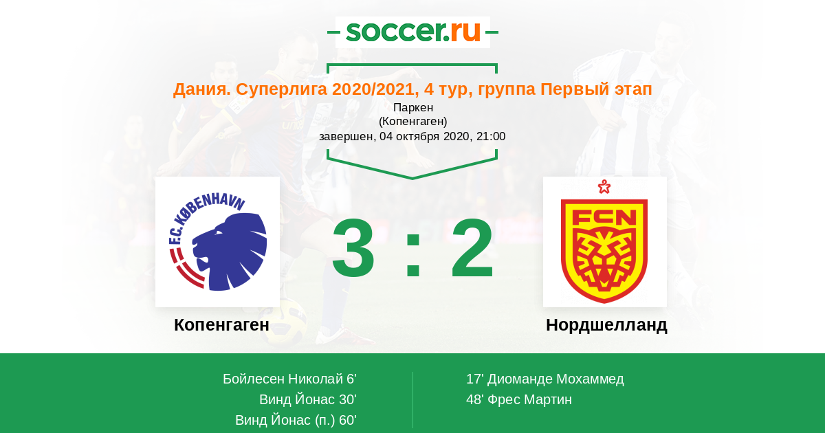 Протокол матча Копенгаген против Нордшелланд